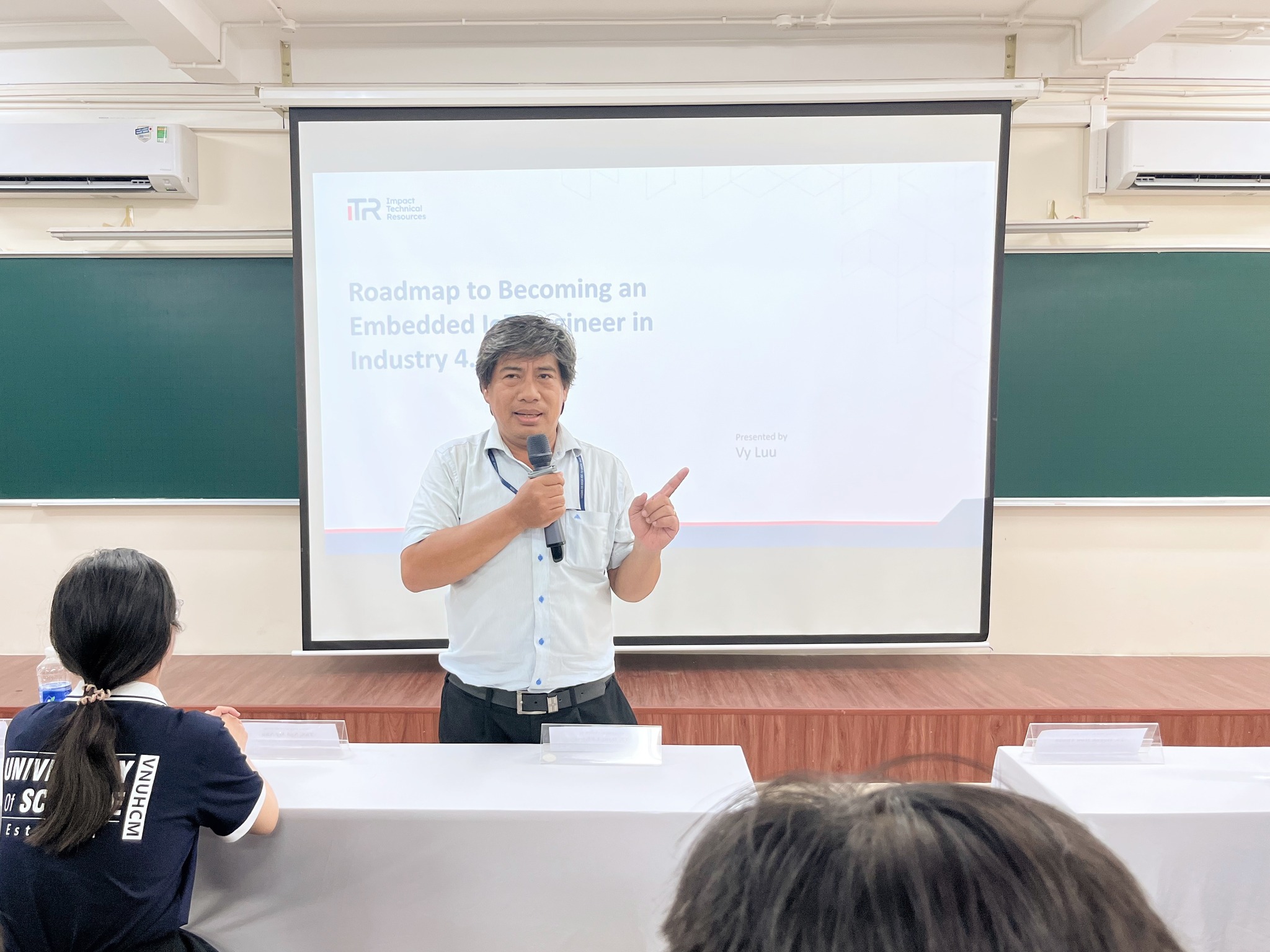 Vào ngày 18/11/2025, tại cơ sở Khu đô thị ĐHQG-HCM, buổi chia sẻ về ngành nghề từ Công ty Cổ phần ITR Việt Nam cho sinh viên Khoa Điện tử – Viễn thông, Trường Đại học khoa học tự nhiên, ĐHQG-HCM đã diễn ra với sự tham gia của 170 bạn sinh viên.