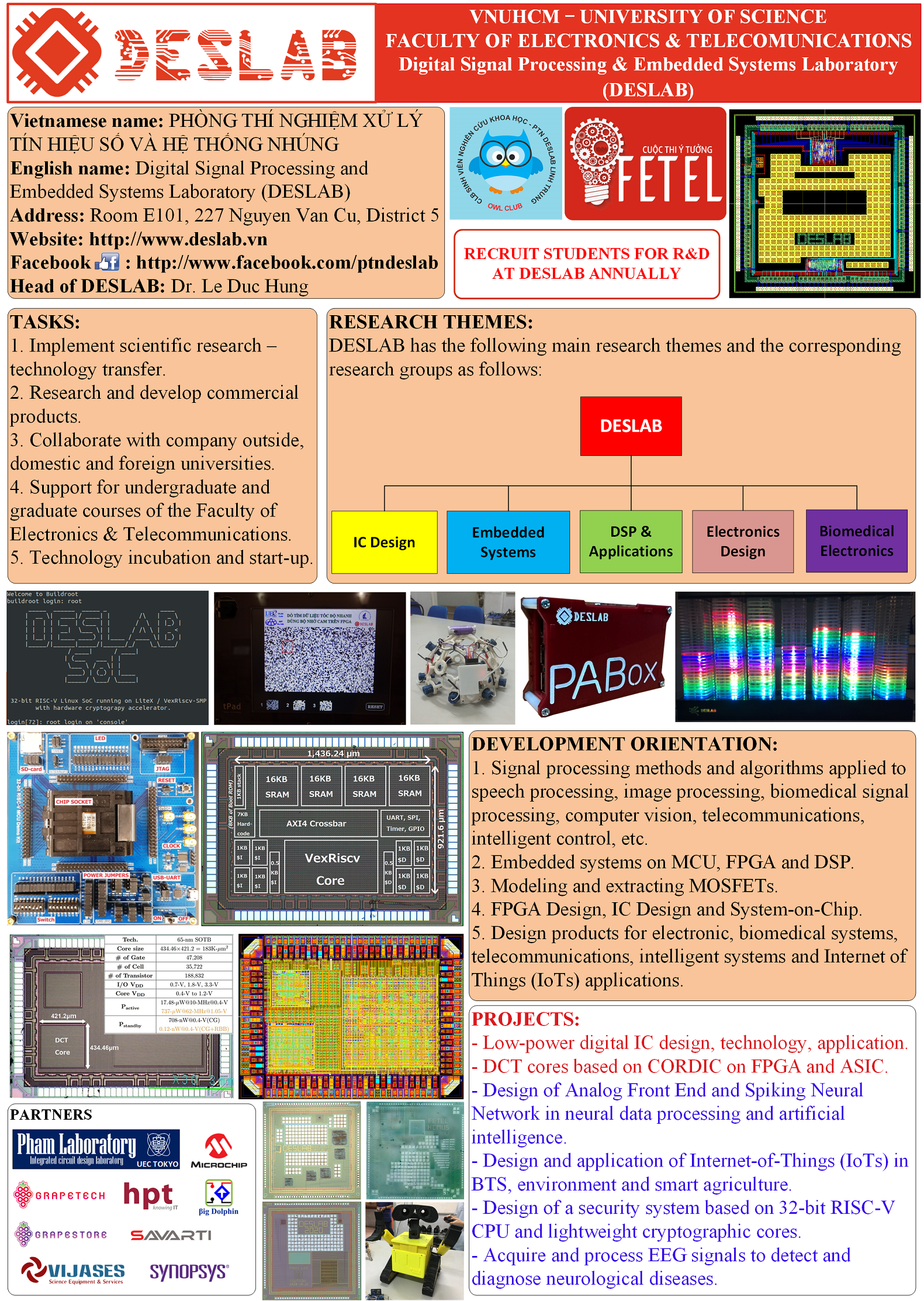 Thiết kế vi mạch; Điện tử y sinh; Hệ thống SoC tiên tiến.