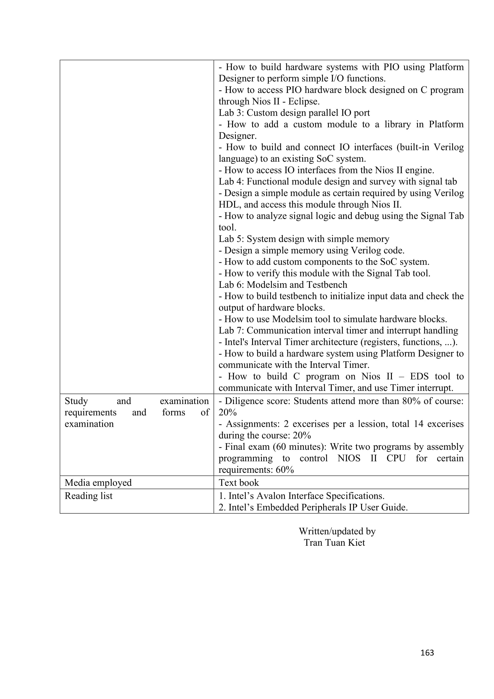 – Thực hành Thiết kế vi mạch số và lõi IP.