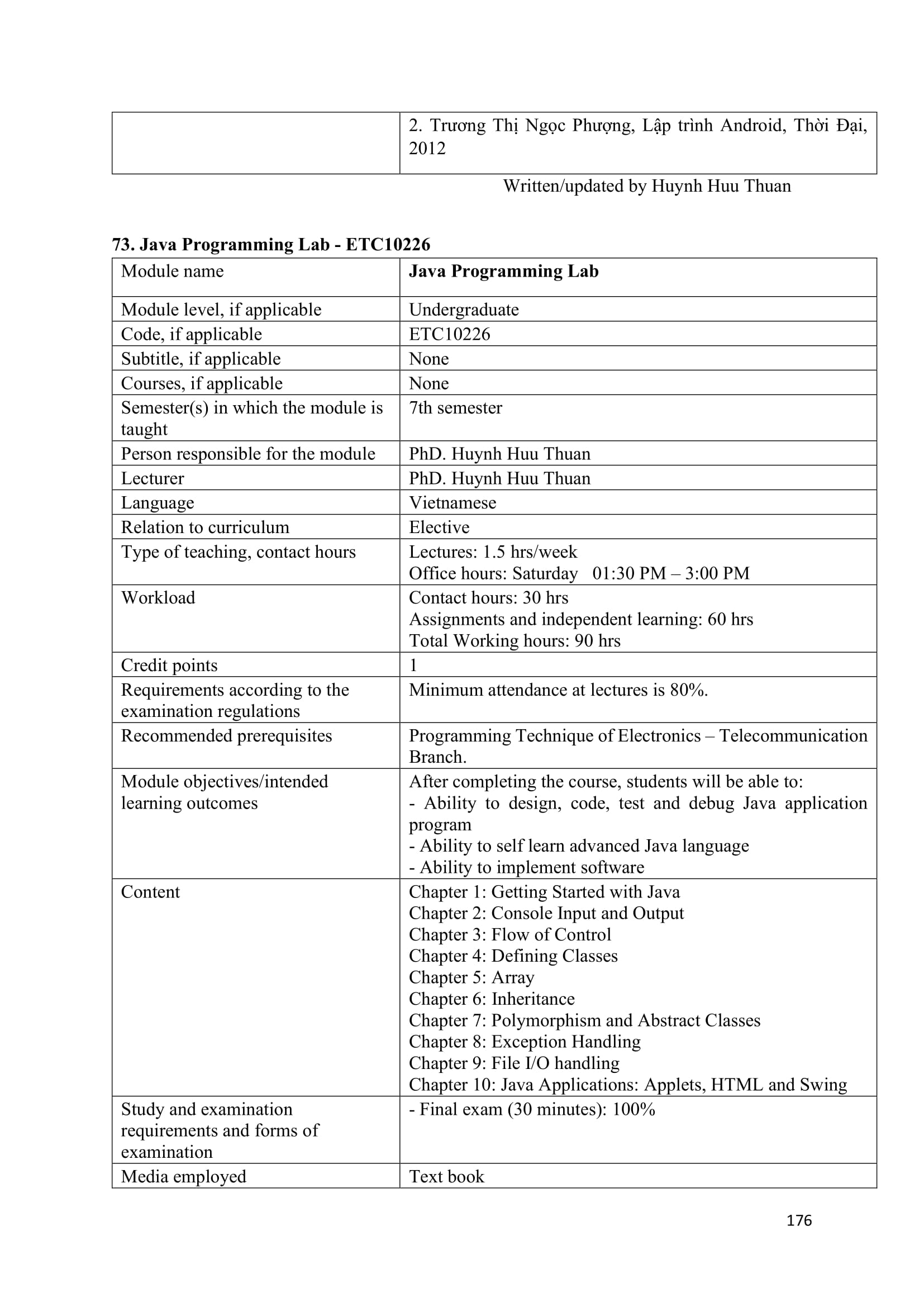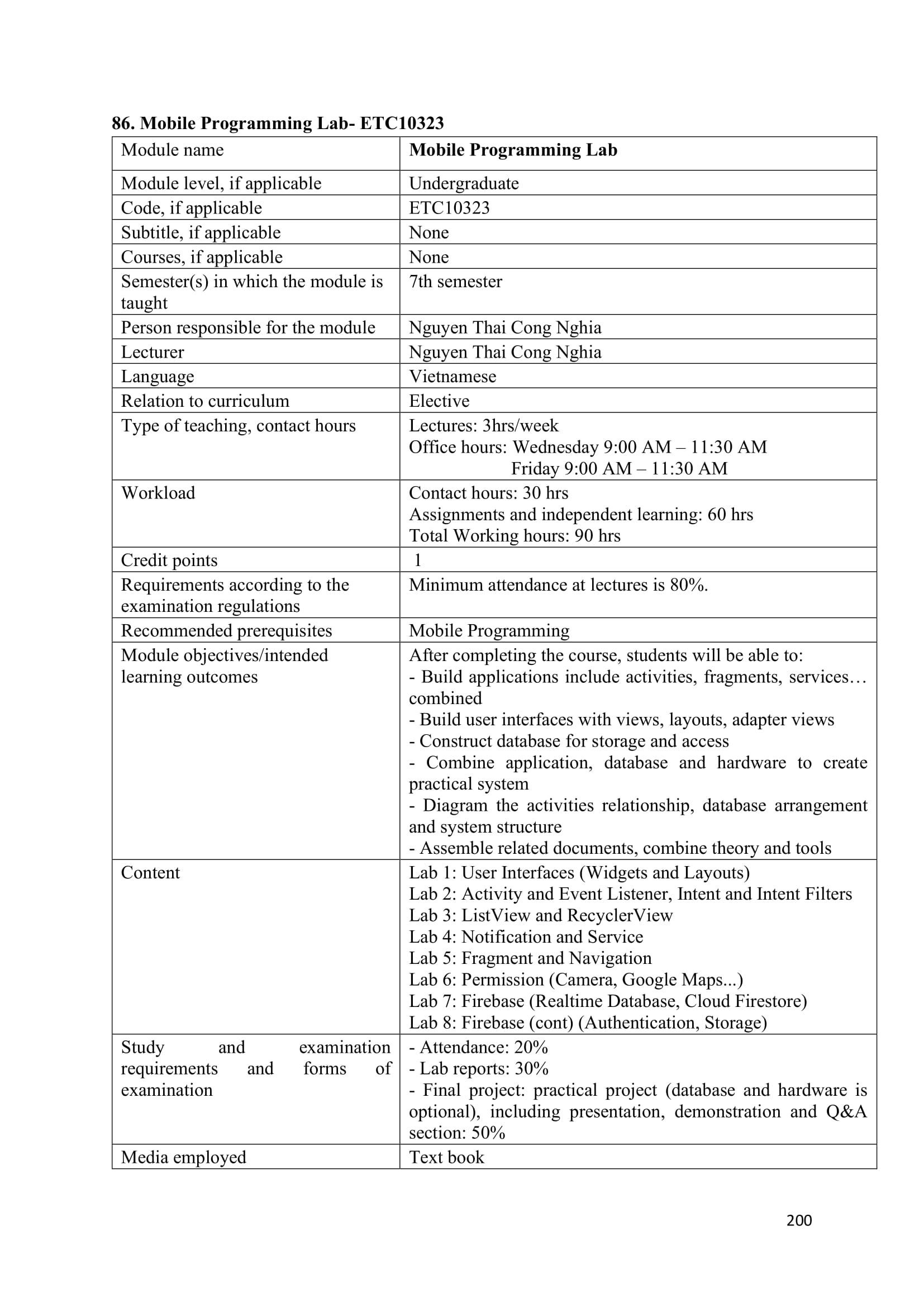 – Thực hành kỹ thuật lập trình ngành Điện tử Viễn thông.