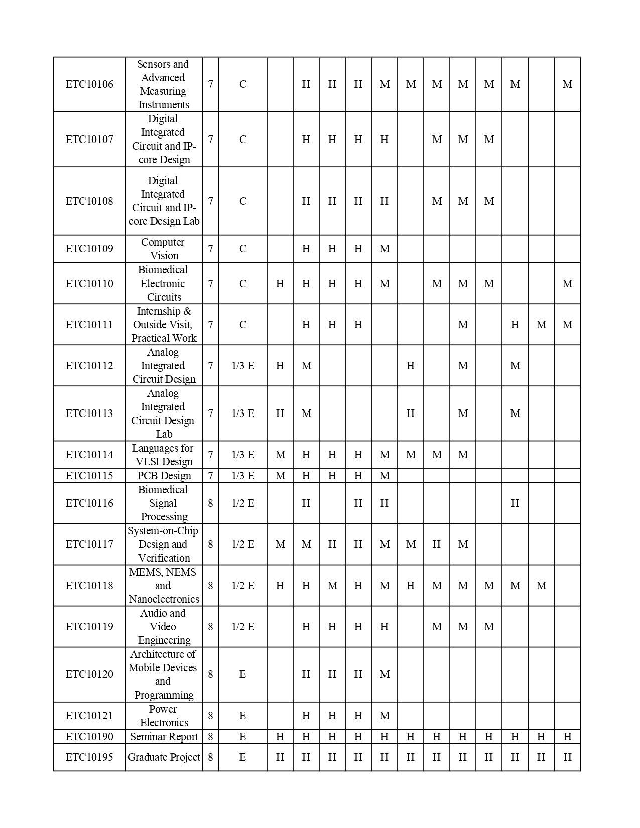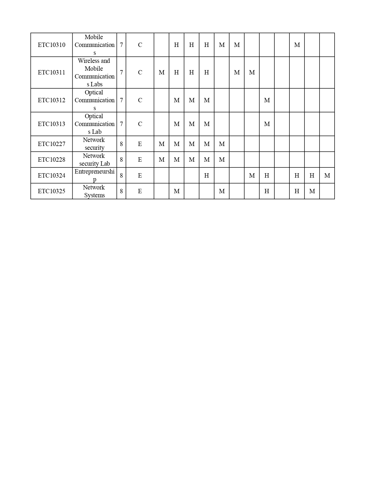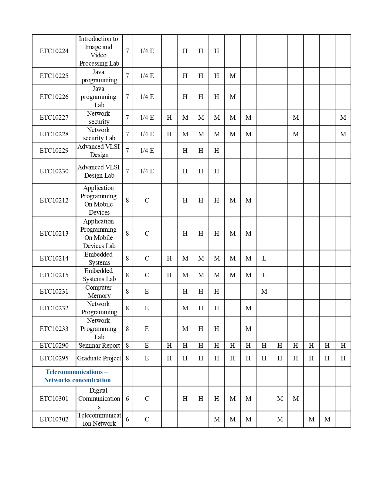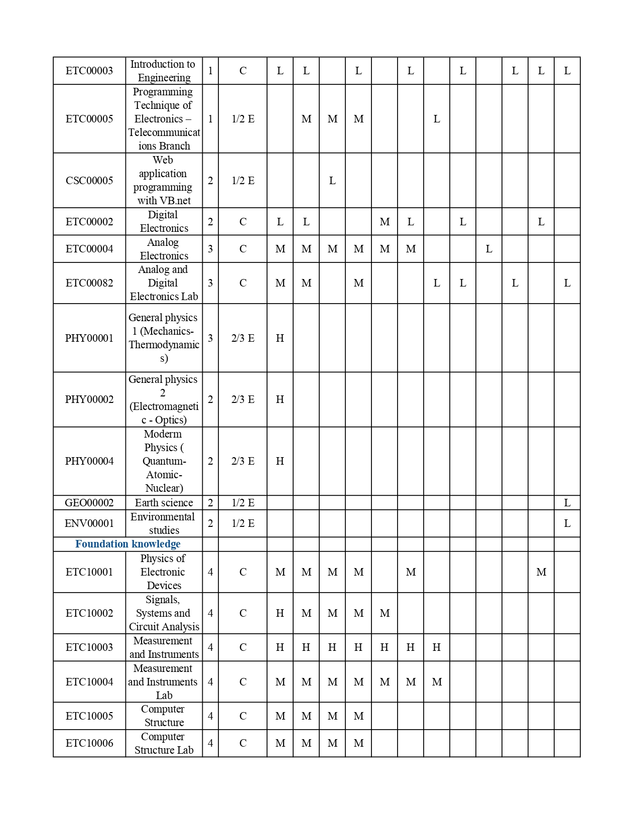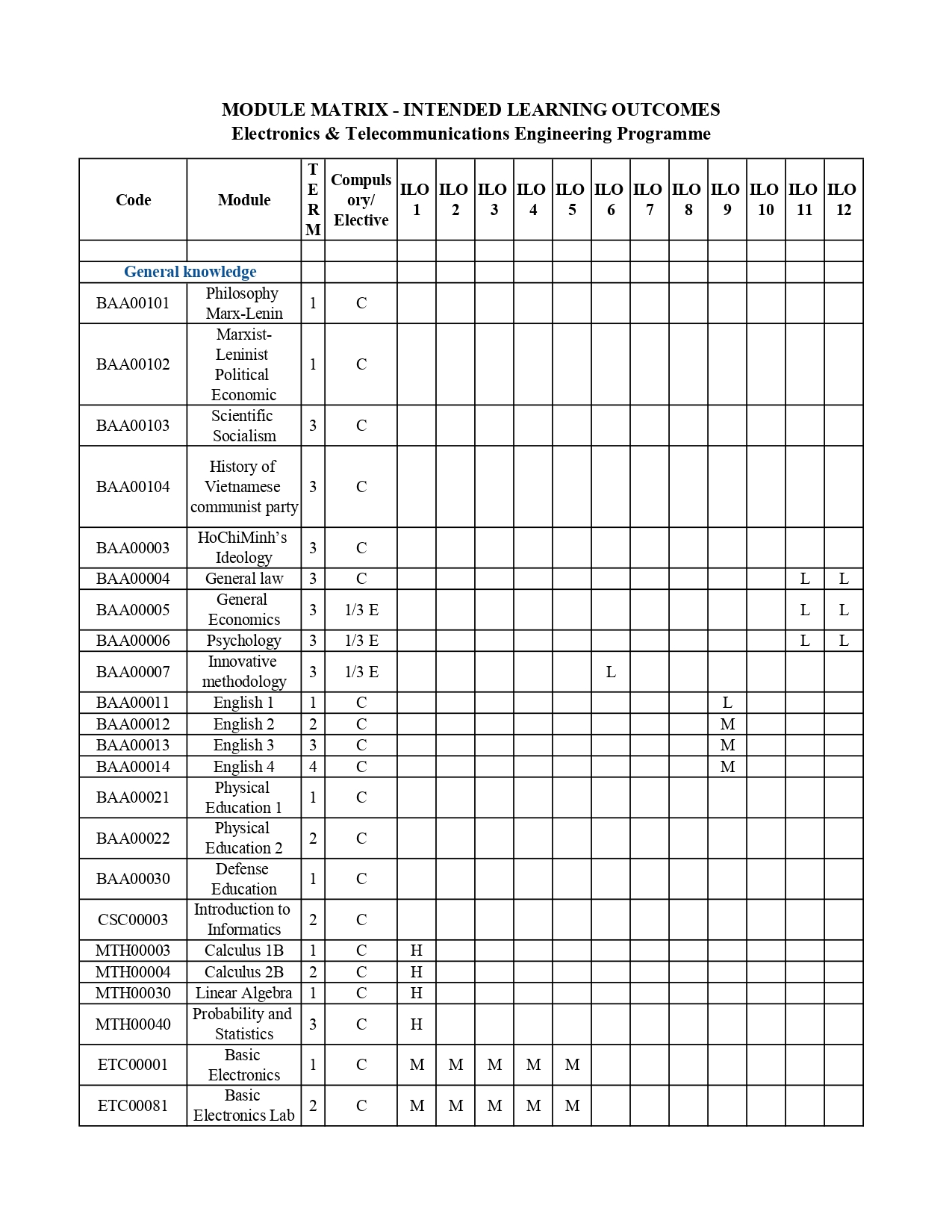 MODULE MATRIX – INTENDED LEARNING OUTCOMES of Electronics & Telecommunications Engineering Programme (Updated)