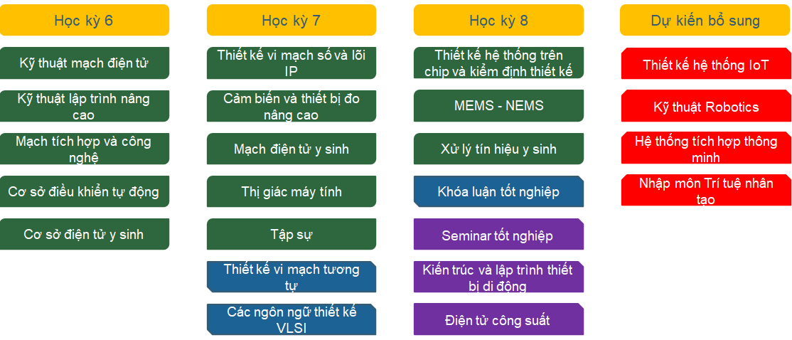 Chương trình đào tạo chuyên ngành được phân bố theo các học kỳ như sau: