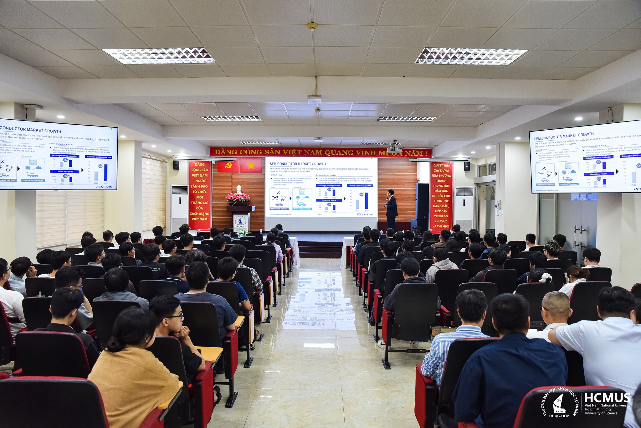 Phát biểu khai mạc hội nghị, PGS.TS. Trần Minh Triết, Phó Hiệu trưởng Nhà trường, bày tỏ vinh dự khi Trường ĐH KHTN lần thứ ba được tín nhiệm đăng cai tổ chức ICDV – một diễn đàn học thuật uy tín trong lĩnh vực thiết kế vi mạch. Đồng thời khẳng định vai trò tiên phong của Nhà trường trong đào tạo và nghiên cứu chuyên sâu về lĩnh vực vi mạch, một trong những ngành mũi nhọn của tương lai.
