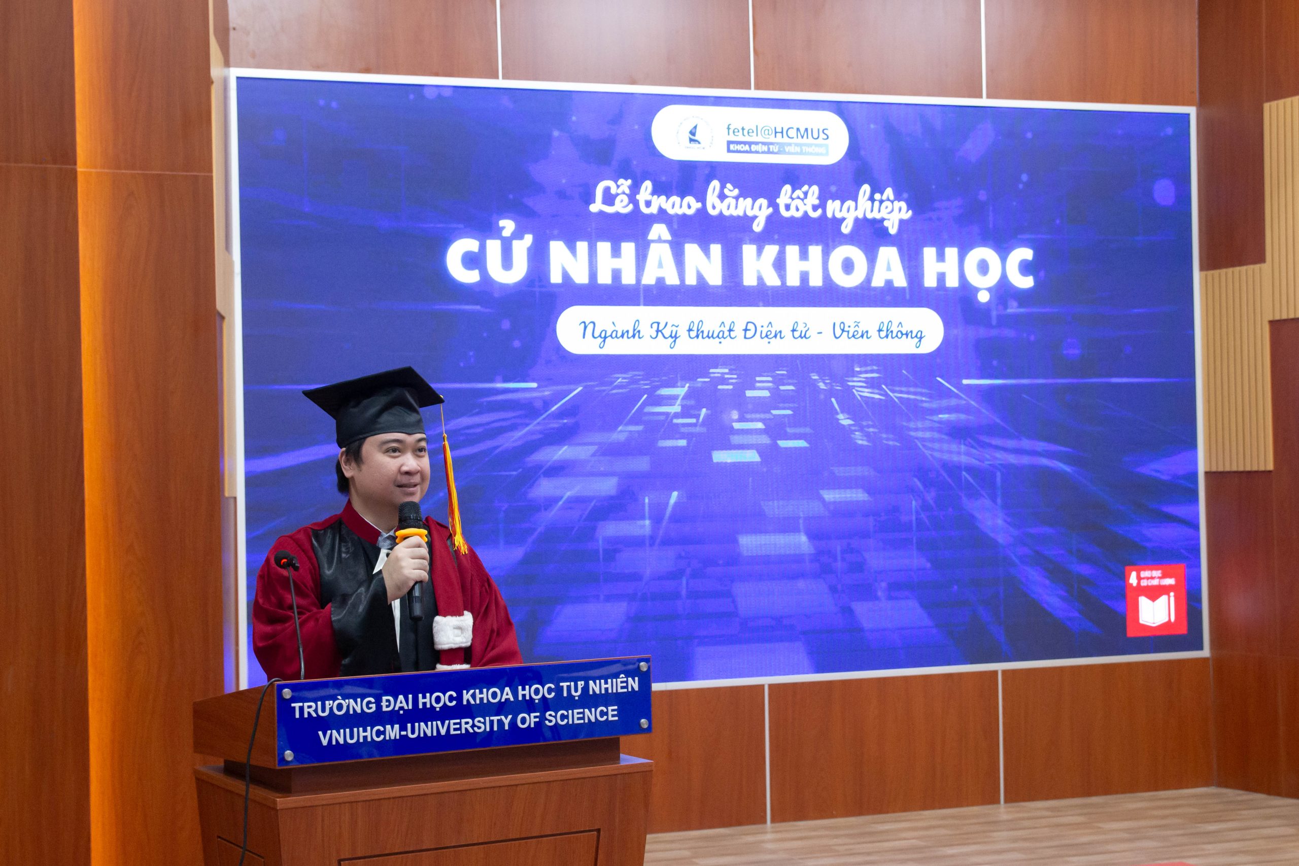 Vào chiều Chủ nhật, 21/12/2025, tại Giảng đường 1, Trường Đại học Khoa học tự nhiên, ĐHQG-HCM, Lễ trao bằng tốt nghiệp Cử nhân Ngành Kỹ thuật Điện tử – Viễn thông năm 2025 đã diễn ra trong không khí hân hoan và vui mừng của quý Thầy Cô, quý Phụ huynh và các bạn tân Cử nhân.