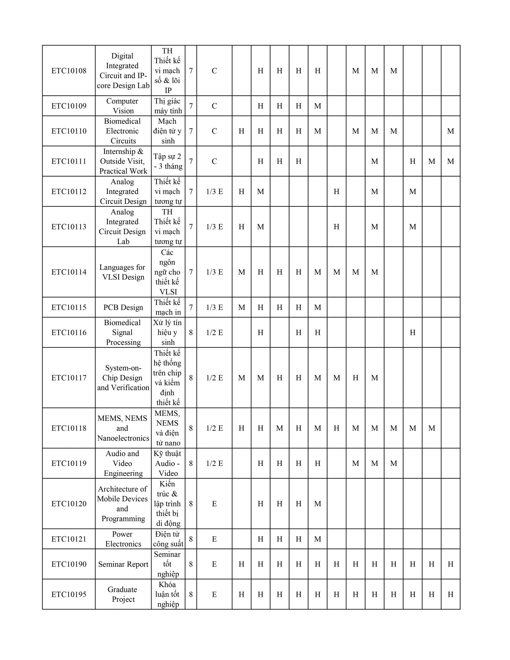 Thiết kế vi mạch; Điện tử y sinh; Hệ thống SoC tiên tiến.