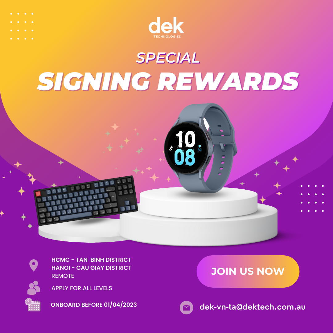 📌Trở thành Lập trình viên vươn tầm Quốc tế cùng Signing Rewards cực chất tại DEK Technologies Việt Nam, tại sao không? Nào mình cùng “Apply DEK ngay – Nhận quà TECH hay” nhé 😆