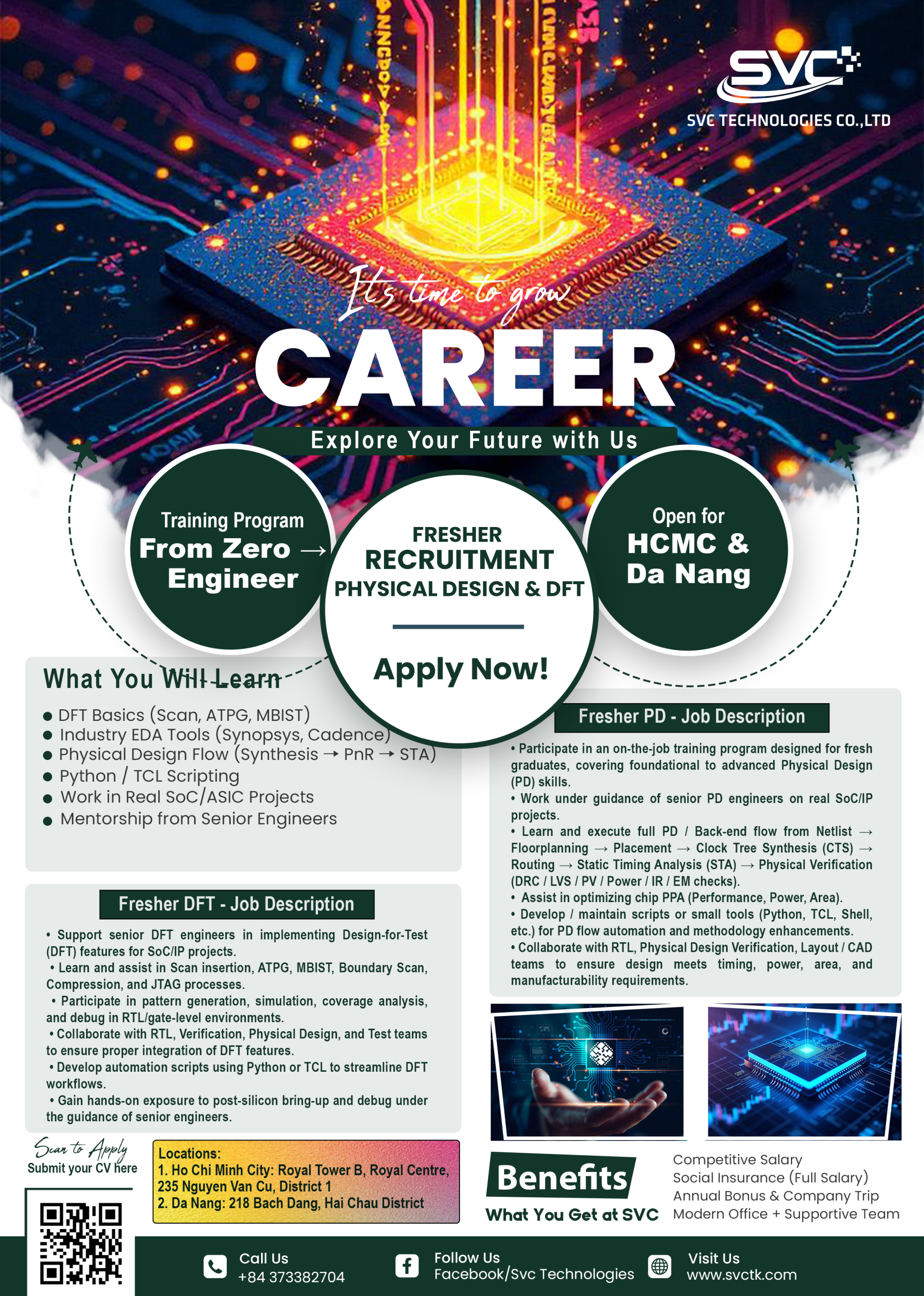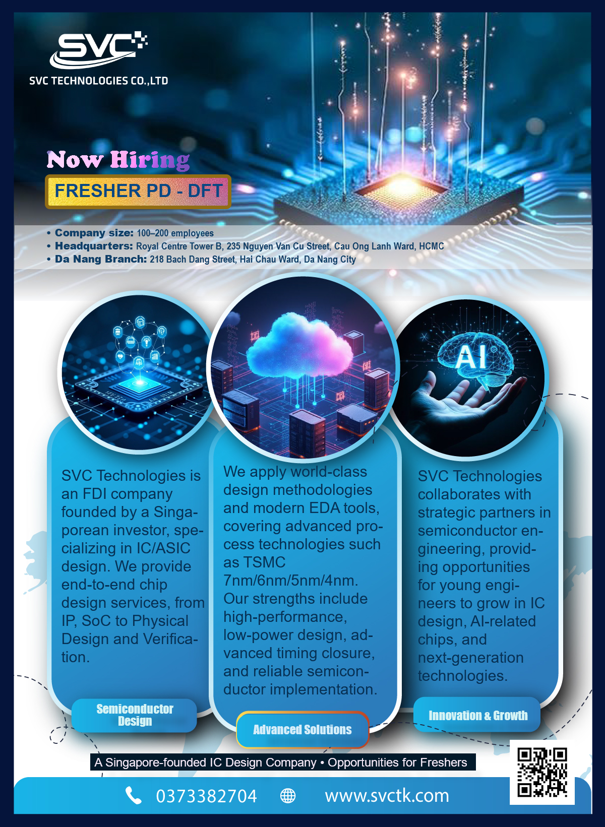 – A great opportunity for passionate young engineers who want to start their career in the Semiconductor / VLSI / Physical Design industry — one of the fastest-growing fields in Vietnam!