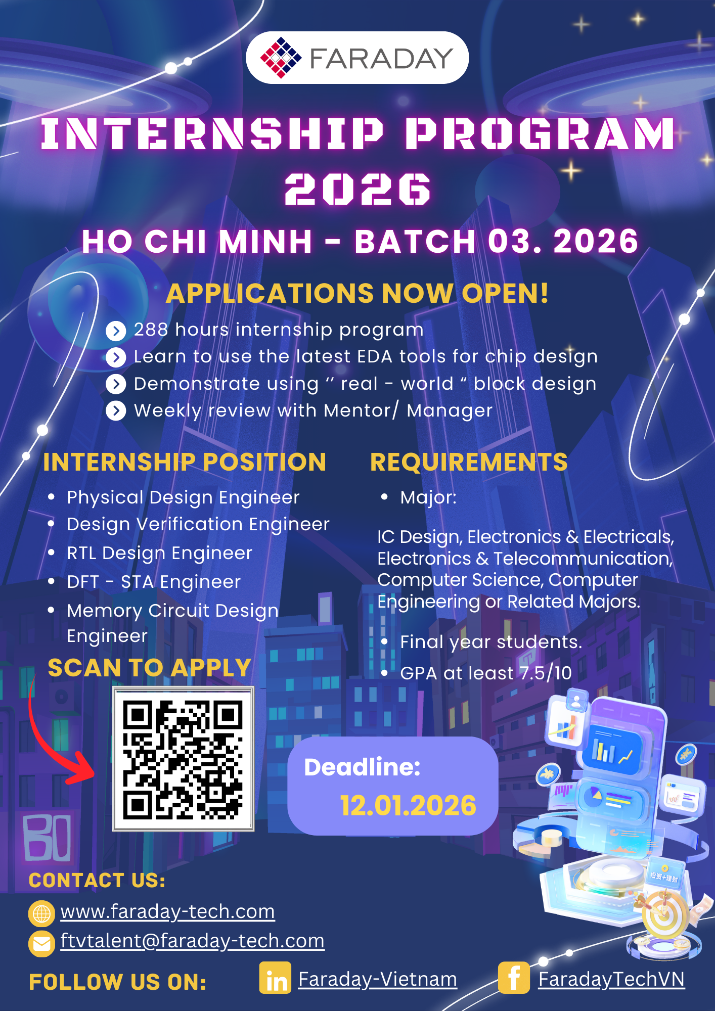 Faraday Technology Vietnam is thrilled to announce opening for Internship in the following positions: