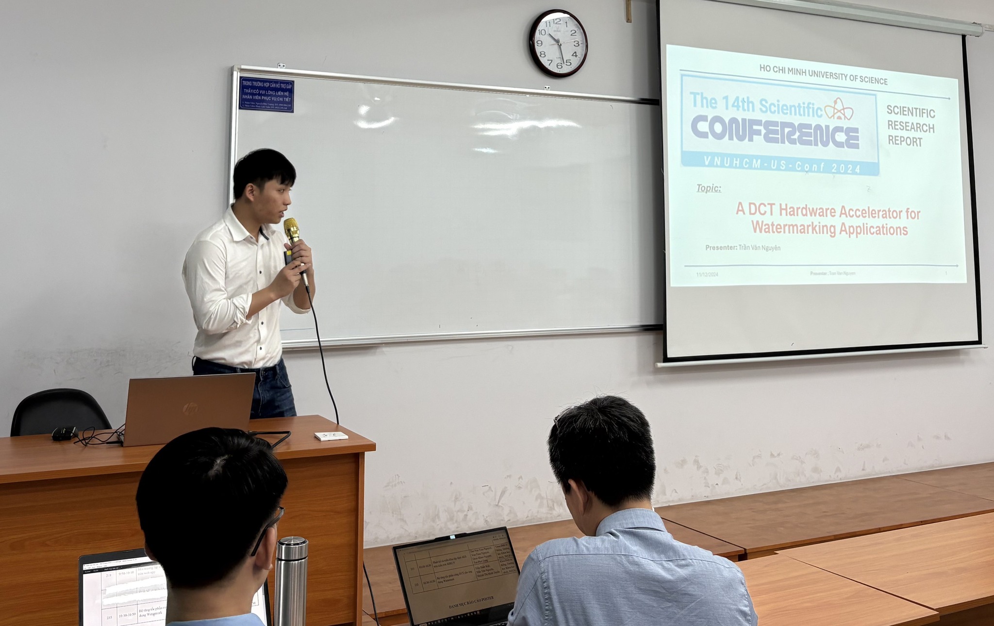 Dưới sự chủ trì của Tiến sĩ Bùi Trọng Tú, Trưởng Khoa Điện tử – Viễn thông, các tham luận đã thể hiện sự đa dạng trong lĩnh vực nghiên cứu từ công nghệ robot tự hành, hệ thống phân bổ tài nguyên mạng đến ứng dụng trí tuệ nhân tạo trong dự đoán giá cổ phiếu.