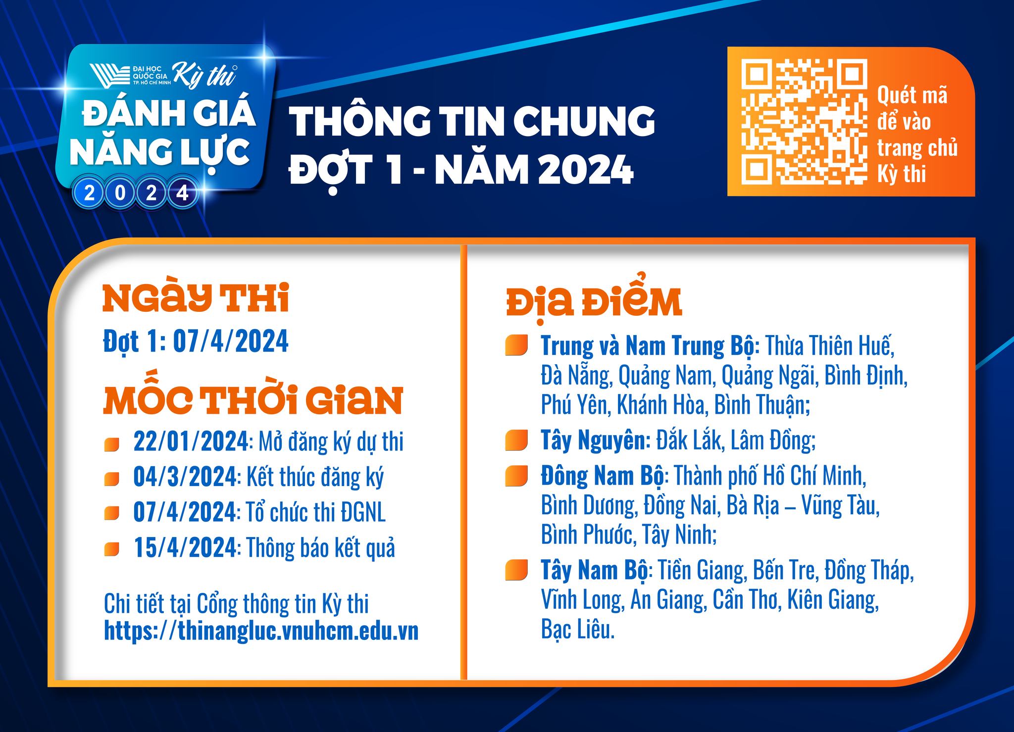 THÔNG TIN QUAN TRỌNG KỲ THI ĐGNL ĐỢT 1, NĂM 2024